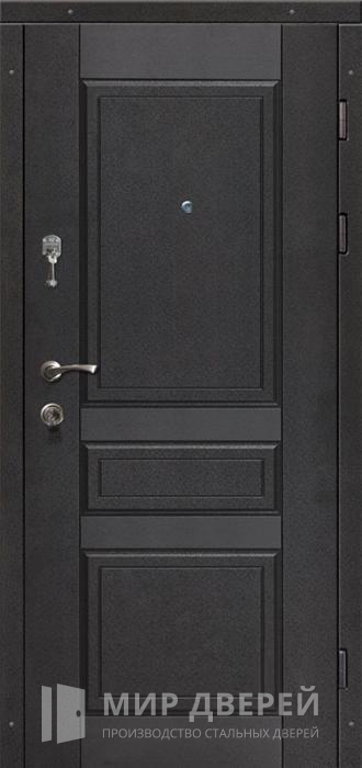Утепленная входная дверь №44 предназначена для частных домов и коттеджей, где требуется высокий уровень теплоизоляции и безопасности. Дверь обладает стильным дизайном с внешней и внутренней отделкой из МДФ, представленной в темных и черных цветах, что придает ей современный и элегантный вид.